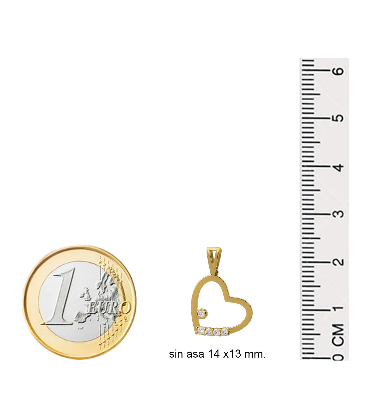 El colgante mide 14 x 13 mm, sin contar el asa, lo que lo hace perfecto para lucirse de forma sutil pero significativa. Su tamaño compacto y peso ligero de 0,70 gramos aseguran comodidad al llevarlo colgado durante todo el día.