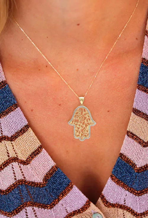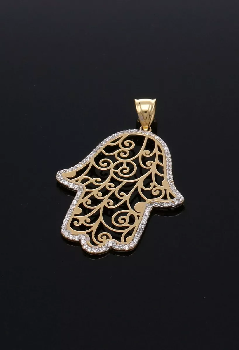 Colgante de oro 18k Mano de Fátima, presentamos el exquisito Colgante de oro amarillo 18k Mano de Fátima, una joya cautivadora y llena de significado. La imagen detallada de la mano con calados arabescos evoca a la ancestral tradición árabe, representando protección, bendiciones y buena fortuna.