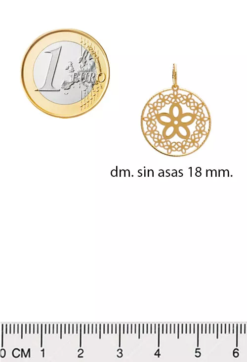 Colgante oro 18 ktes circulo calado flores 243_401-00725