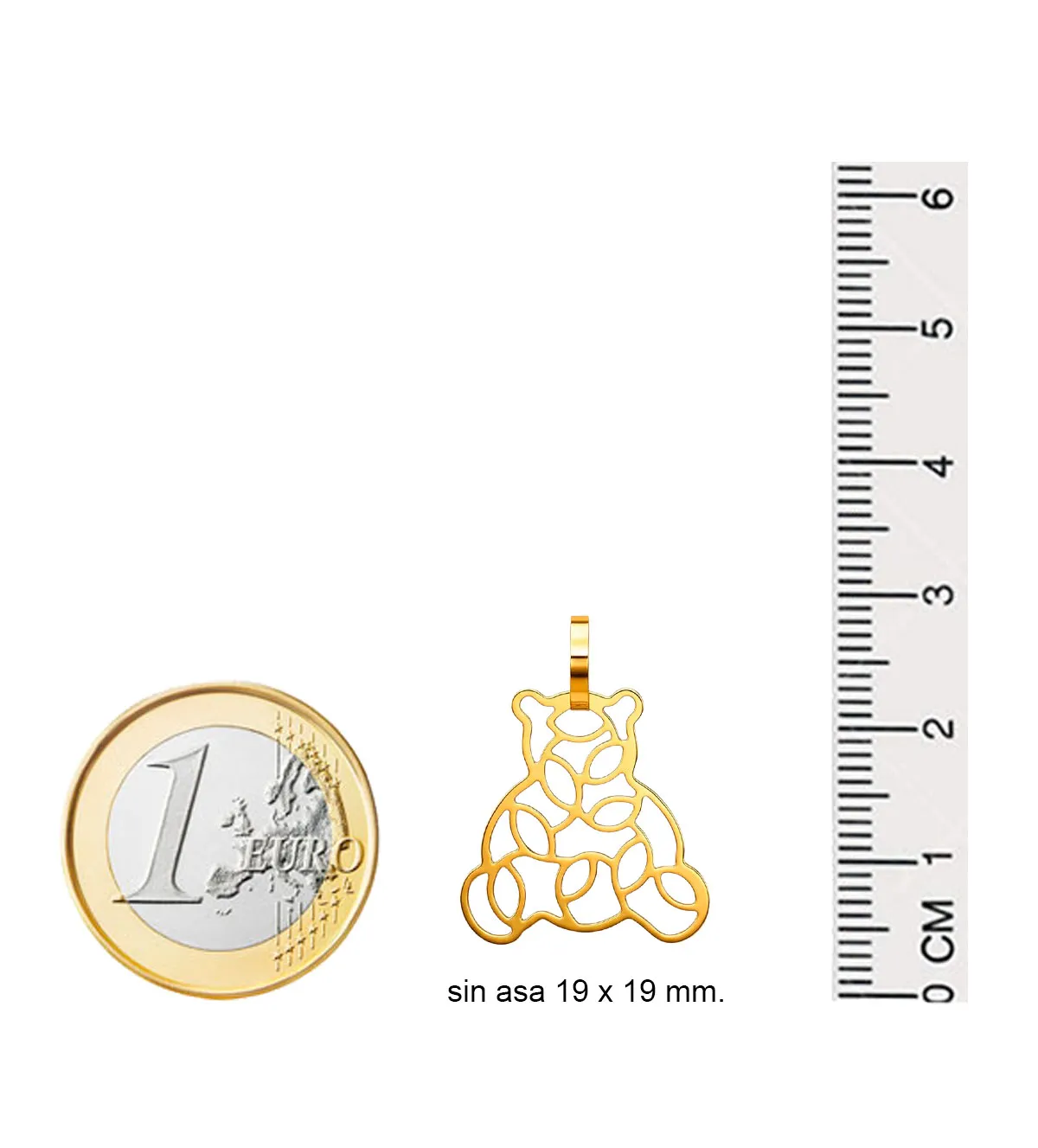 Con unas dimensiones aproximadas de 19 x 19 milímetros, este colgante de oro presenta un tamaño versátil, ideal tanto para adultos como para jóvenes. No es una pieza excesivamente grande ni demasiado discreta, lo que la convierte en un complemento perfecto para uso diario.