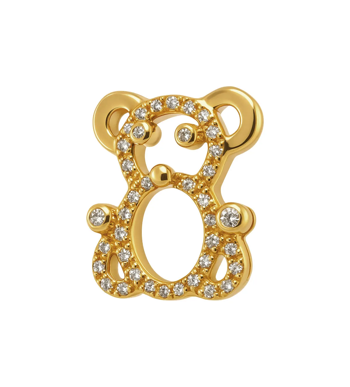 Colgante de oro amarillo 18 kilates con circonitas en delicada forma de oso calado, rodeado por una brillante galería engastada que realza su encanto. Una joya tierna y luminosa, ideal para expresar cariño en cumpleaños o aniversarios. Su diseño único y elegante lo convierte en un regalo inolvidable que robará sonrisas al instante. Haz tu pedido hoy mismo y recibe esta pieza exclusiva con disponibilidad inmediata. ¡Últimas unidades en stock!