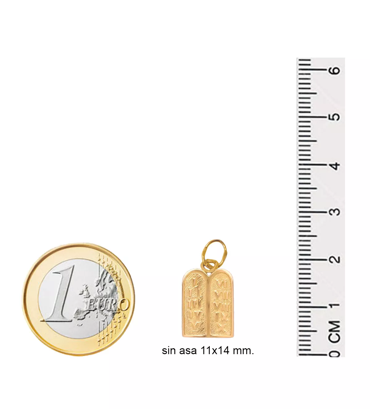 Descubre la elegancia y el simbolismo de los colgantes de oro con este delicado colgante de las Tablas de la Ley, elaborado en oro amarillo de 18 quilates. Representando los 10 mandamientos entregados a Moisés, este exquisito colgante de 11×14 mm y un peso de 1,40 gramos es el símbolo cristiano por excelencia. Perfecto para mujeres que buscan una joya que combine fe y estilo, su acabado refinado y diseño compacto lo hacen ideal para llevar todos los días o en ocasiones especiales.