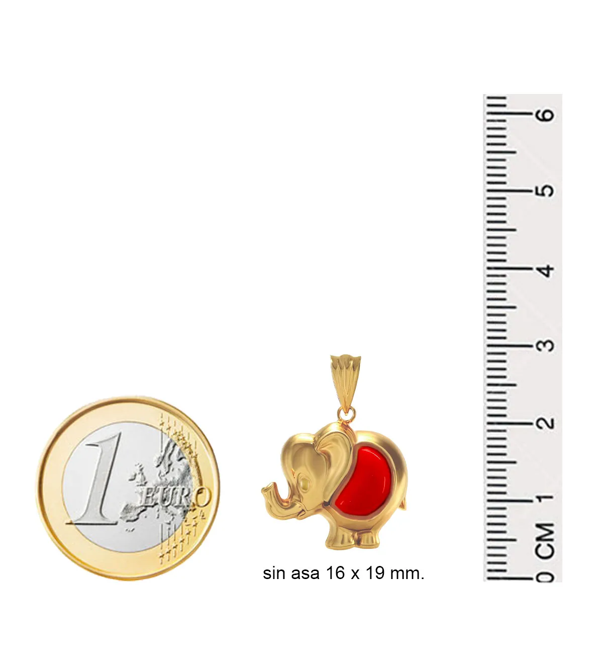 Colgante de oro con diseño impactante de elefante de la suerte en oro 18K, con trompa hacia arriba y media luna de coralina roja incrustada. Su asa tipo escudo permite llevarlo con cadena o cordón, combinando elegancia y simbolismo. Un detalle único ideal para regalar en cumpleaños o aniversarios. ¡Disponible en stock con entrega inmediata! No te quedes sin este amuleto de protección y estilo. Haz tu pedido hoy antes de que se agote.