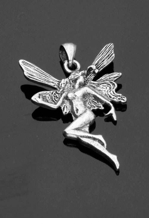Colgante de plata hada de los bosques, silueta de hada que nos recuerda a Campanilla o a una Venus alada, un colgante repleto de connotaciones positivas para atraer la suerte y la fortuna a quien lo lleva puesto, un regalo perfecto para inmortalizar un momento especial.