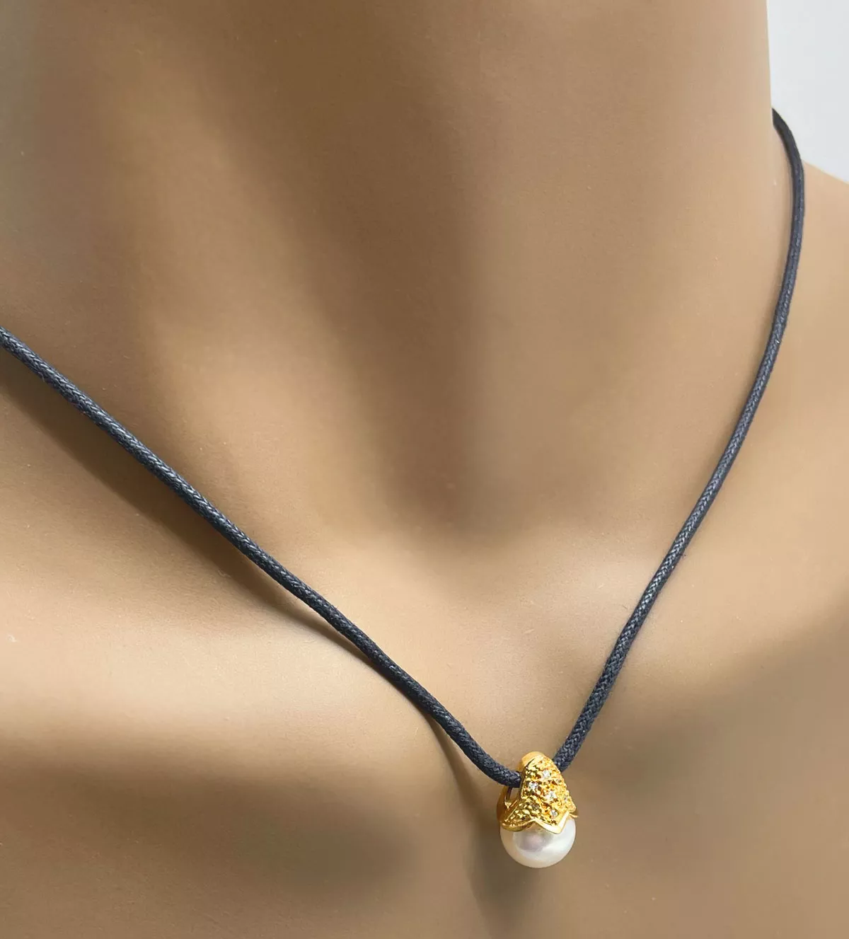 Esta gargantilla de oro está elaborada con materiales de primera calidad. El oro amarillo de 18 quilates garantiza un brillo inigualable y resistencia, mientras que los 7 diamantes engastados en el capuchón aportan un toque de lujo. La perla cultivada de 8 mm es una muestra de la belleza natural, seleccionada cuidadosamente para asegurar su pureza y perfección.