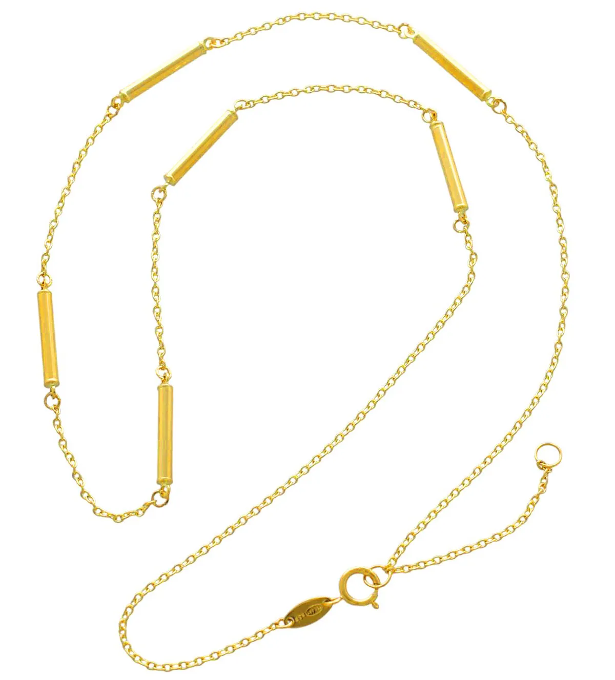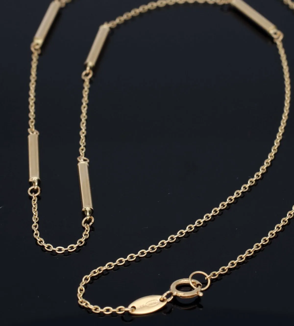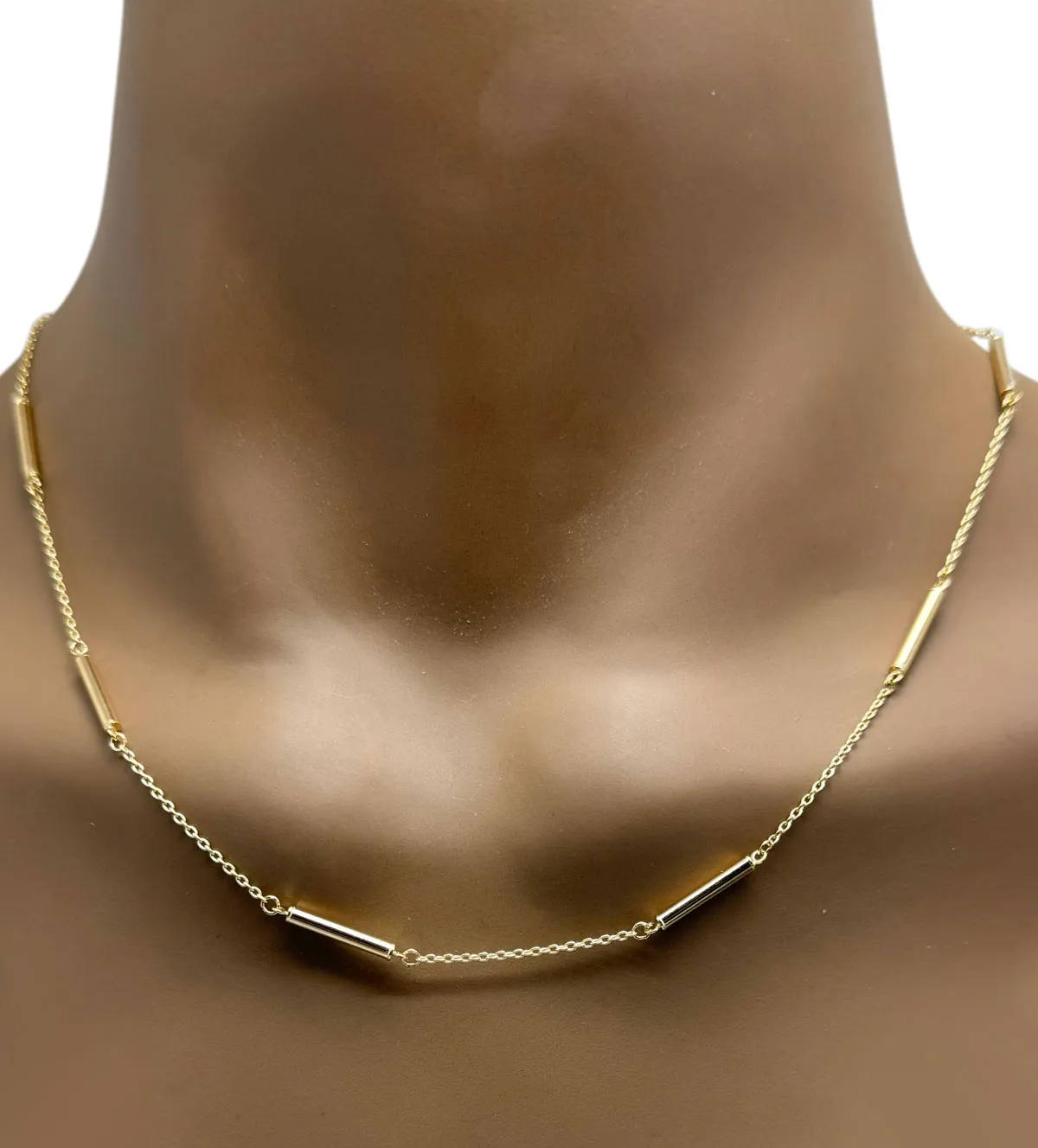 Gargantilla de oro de diseño elegante y sofisticado, elaborada en oro amarillo de 18 ktes con acabado brillo. Su cadena de eslabones forzados con entrepiezas cilíndricas aporta un estilo único y versátil que realza cualquier look. Ajustable en diferentes medidas para adaptarse a cada ocasión, combina lujo y comodidad en una sola joya. Disponible de inmediato con precios especiales online. ¡Adquiérela ahora y no dejes pasar esta oportunidad, el stock es limitado!.