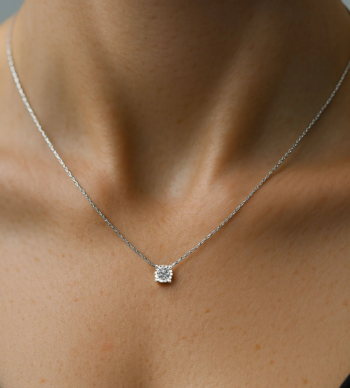 Hay joyas que trascienden modas y tendencias, piezas capaces de acompañarte durante toda la vida y convertirse en símbolos de momentos especiales. Esta gargantilla de oro blanco de 18 quilates con diamante natural representa precisamente eso: elegancia, delicadeza y sofisticación en una sola joya. Diseñada para resaltar la belleza natural de quien la lleva, su brillo sutil y refinado la convierte en una elección perfecta tanto para el día a día como para ocasiones memorables.