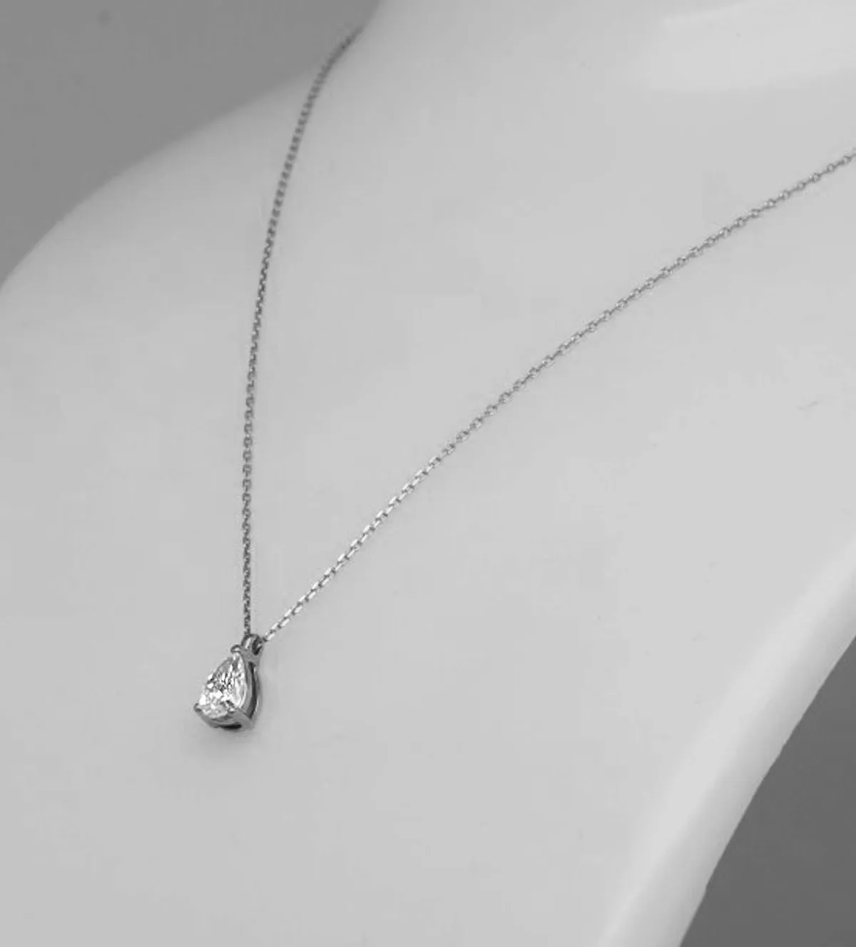 El diamante natural talla pera ha sido seleccionado por su excelente calidad, presentando un color H y una pureza SI que garantizan un brillo limpio y elegante. Su cuidada talla permite una óptima refracción de la luz, aportando destellos sutiles pero deslumbrantes que elevan la categoría de la pieza.