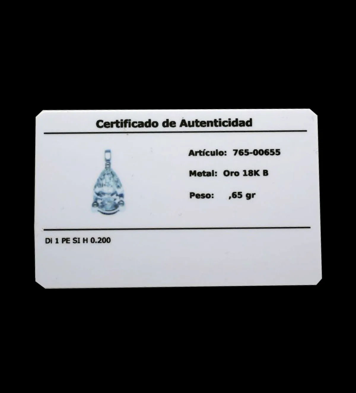 Esta joya se envía con un Certificado de Garantía que informa fidedignamente sobre las características de la misma, con una fotografía que permite identificar perfectamente el artículo que se describe.