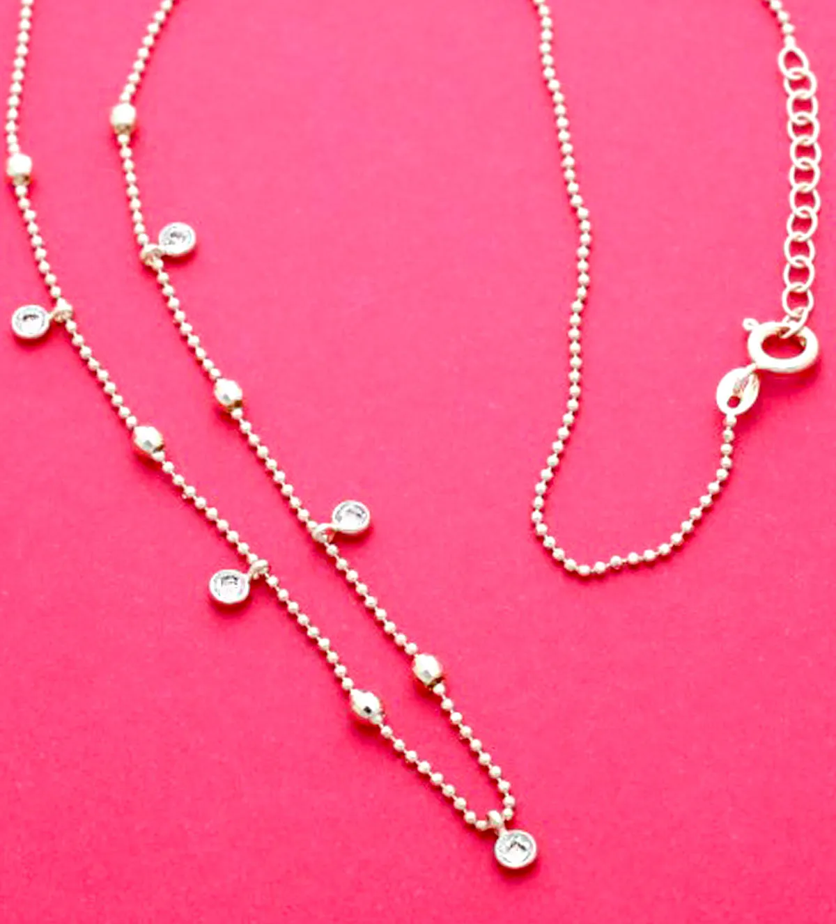 Cadena de bolitas con cinco circonas engastadas en boquillas.