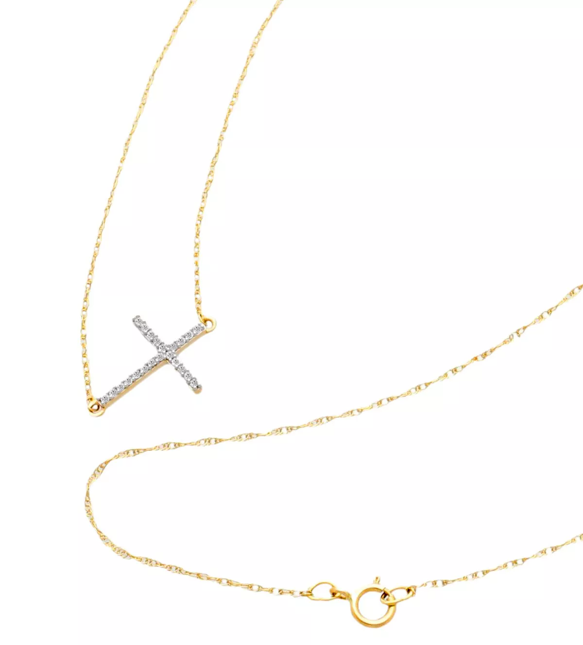 El elemento central de la gargantilla es un motivo de cruz latina, un símbolo cargado de significado y belleza. La cruz, que mide 10,12 mm, está adornada con una galería de 22 diamantes brillantes, que en conjunto pesan 0,062 quilates. Estos diamantes no solo añaden un resplandor espectacular a la pieza, sino que también simbolizan la pureza y la eternidad, valores intrínsecos a la simbología de la cruz. El engastado en garras de oro blanco sobre base de oro amarillo realza el brillo de cada diamante, permitiendo que la luz penetre y se refleje, creando un efecto deslumbrante que fija la atención.