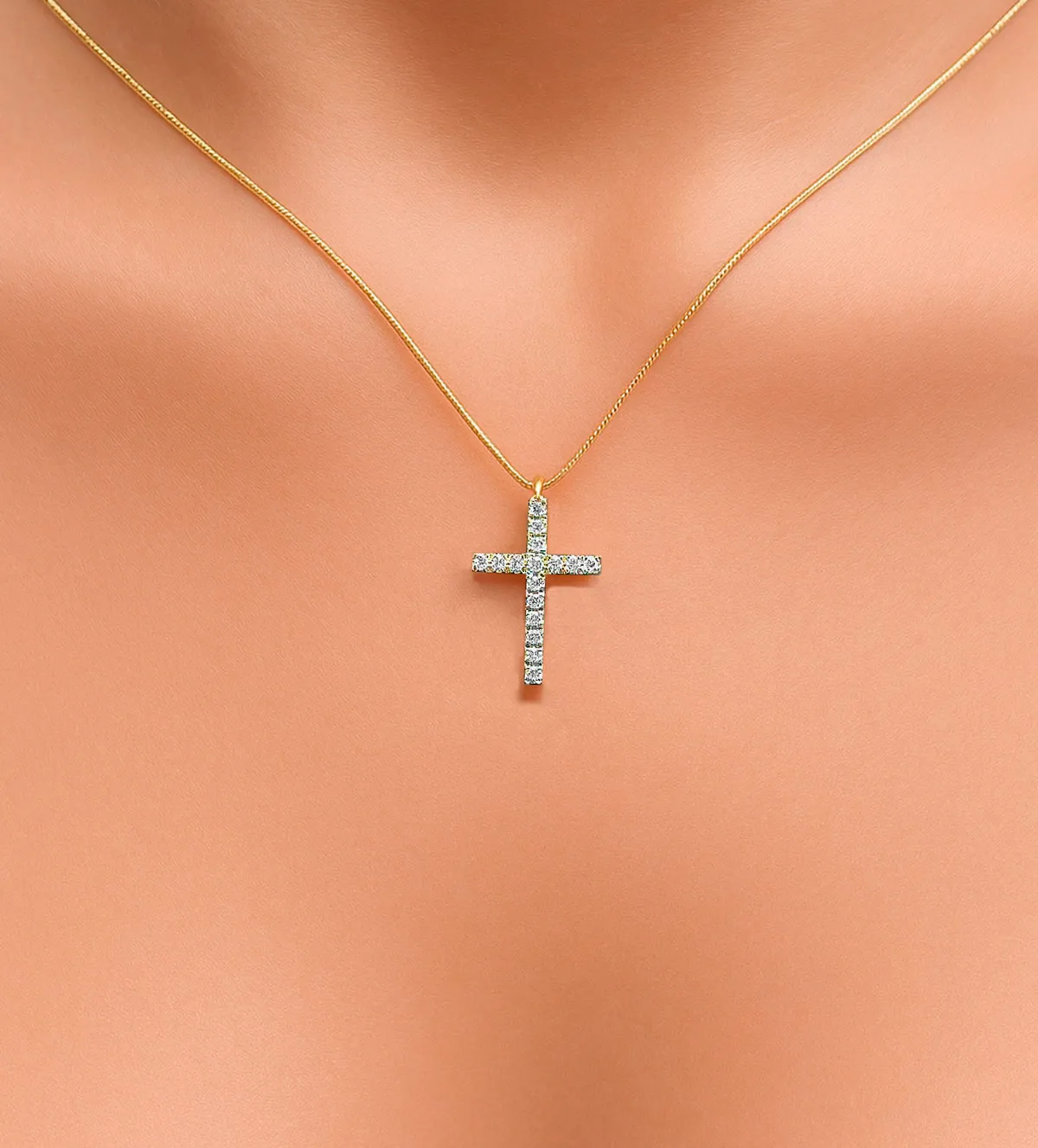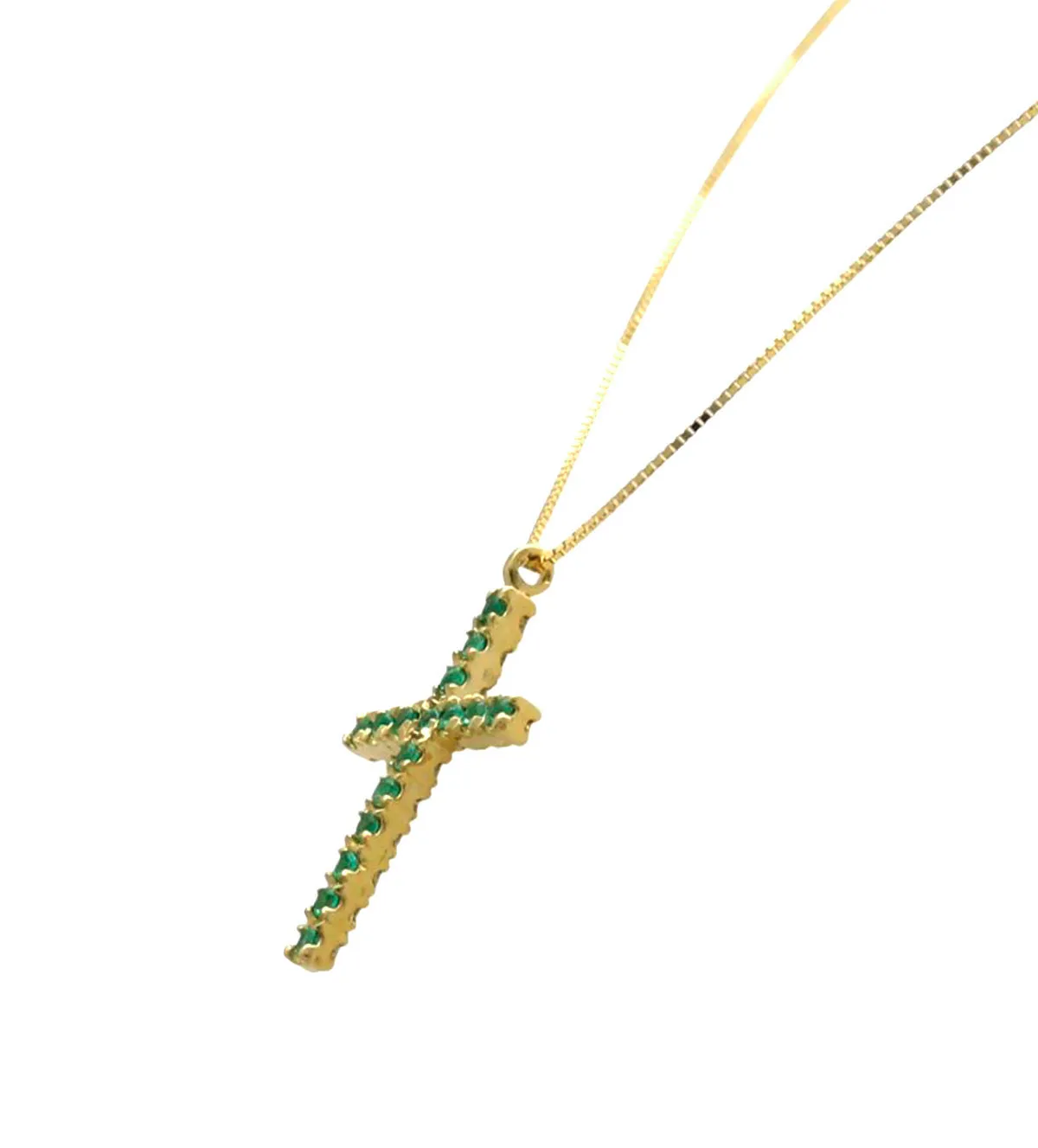 Las piedras utilizadas no solo son bellas, sino también simbólicas. Los diamantes representan la fuerza, la claridad y la eternidad. Las esmeraldas, en cambio, se asocian con la sabiduría, la esperanza y la renovación. Combinadas en una cruz latina, símbolo de fe, espiritualidad o equilibrio, esta gargantilla de oro ofrece un significado profundo más allá de su apariencia lujosa.