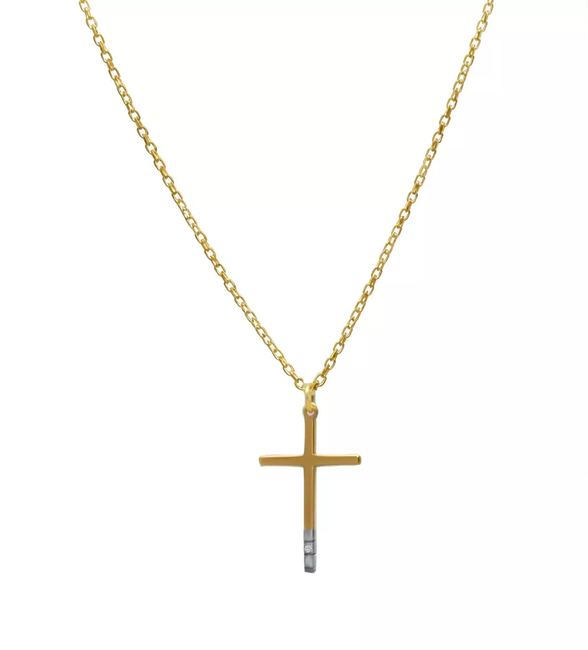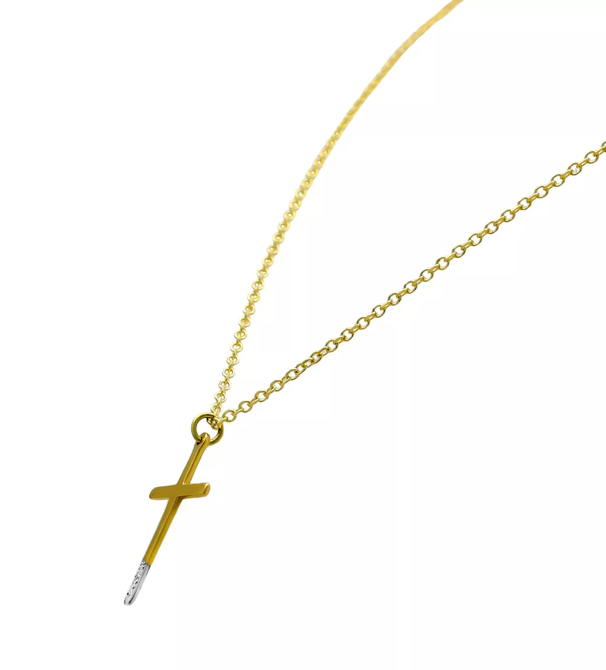 La “Cruxis” está elaborada con oro amarillo de 18 quilates, conocido por su durabilidad y brillo excepcional. Este oro de alta pureza garantiza que la joya mantenga su resplandor a lo largo del tiempo. La cruz, colgante de la cadena, lleva en su base un pequeño diamante que añade un toque de lujo y sofisticación. La base rodinada de la cruz no solo resalta el diamante, sino que también proporciona un contraste elegante con el oro amarillo.