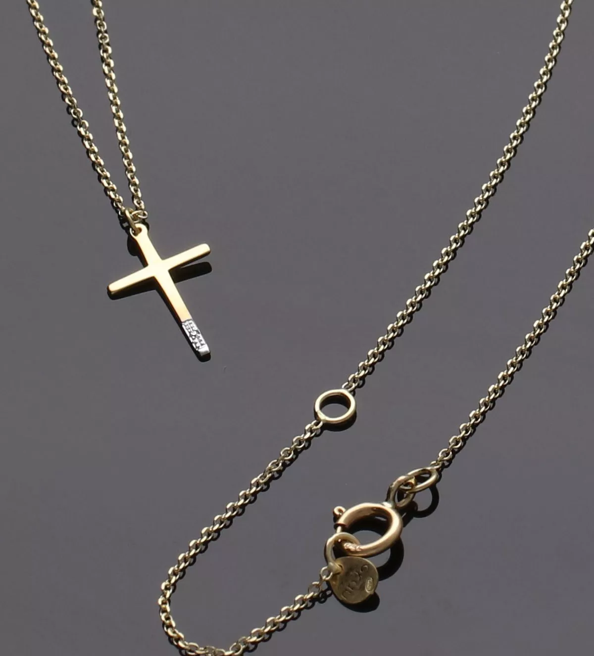 La cruz latina es un símbolo de protección y fe, y cuando se combina con el diamante, representa pureza y fortaleza. Esta gargantilla no solo es un accesorio de moda, sino también un símbolo de esperanza y protección. El uso del oro y el diamante añade un significado adicional de lujo y exclusividad, haciendo de esta joya una pieza verdaderamente especial.