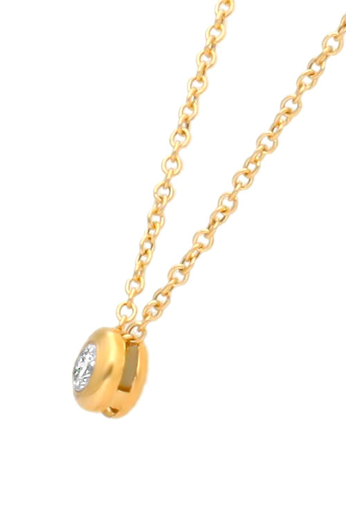 Gargantilla oro amarillo 18k motivo chatón con circonita, cadena fina de eslabones forzados huecos con un motivo circular a modo de chatón con una circonita central, cierre de reasa fácil de utilizar y muy seguro, precio especial que no puedes encontrar en ningún otro lugar.