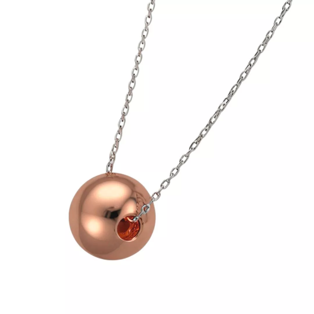 El colgante en forma de esfera, sin necesidad de asa, le da a esta gargantilla de oro un estilo limpio y moderno. La combinación del oro blanco en la cadena y el oro rosa en el colgante aporta un equilibrio perfecto entre tradición e innovación.