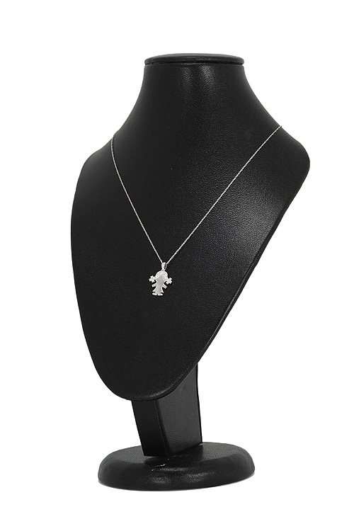 Gargantilla de oro blanco y diamantes, cadena Singapur con motivo silueta de niña con coletas con diamantes engastados. Precioso colgante con el que obsequiar a mamá en el Día de la Madre. Largo: 40 cm Medida colgante: 12 mm. Peso: 2,00 gr. Piedras: diamantes talla brillante 0,07 quilates. Gargantilla oro blanco 18 ktes. con diamante, motivo niña. 40 cm. de largo.