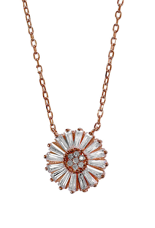 Gargantilla de plata de ley chapada oro, precioso y novedoso diseño realizado con una fina cadena de eslabones forzados de la que cuelga un dije circular orlado, un centro cuajado de 6 circonitas redondas y pequeñas que están rodeadas por una espectacular orla de circonitas talla trapecio, es una gargantilla fina y elegante que podrás lucir en todo tipo de ocasiones.