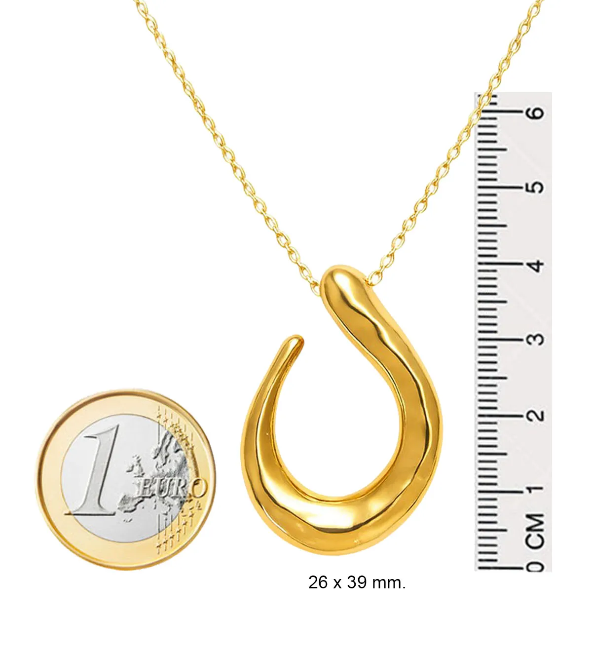| Medidas | Largo cadena sin motivo adaptable de 40 a 43 cm. Motivo 26 x 39 mm. |