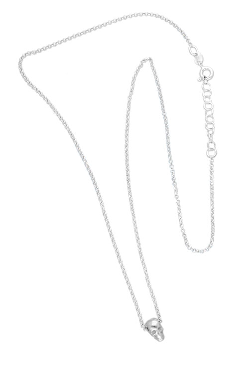 Gargantilla de plata con motivo calavera y cadena de eslabón rolo, simpatica gargantilla cuya cadena atraviesa la figura de una calavera de 5×8 mm. cierre de tipo reasa de medida variable.