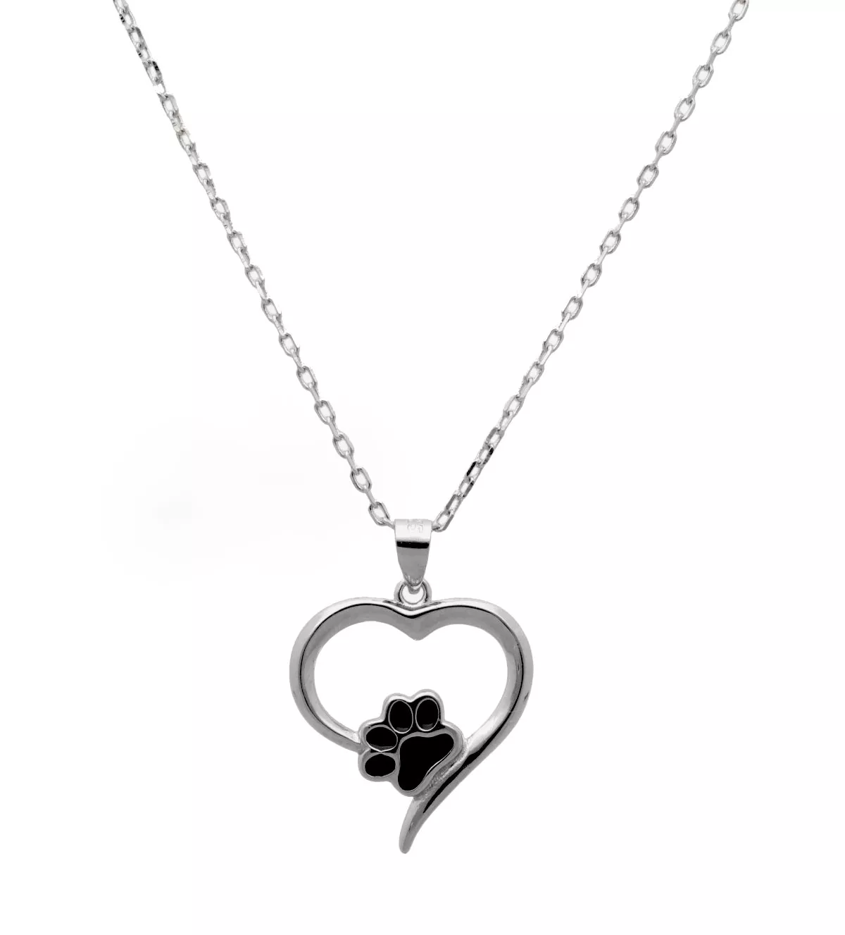 Esta gargantilla de plata es mucho más que una joya, es una declaración de amor eterno tanto para una persona especial como para tu fiel compañero de vida. Su hermoso colgante en forma de corazón calado con una huella esmaltada simboliza el vínculo inquebrantable entre humanos y mascotas. Perfecta para llevar siempre cerca el recuerdo de tu amigo peludo, esta pieza no solo destaca por su belleza, sino también por su profundo significado.