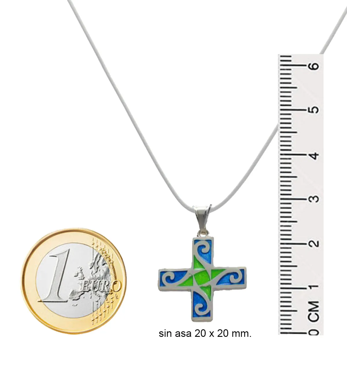 Esta gargantilla está elaborada con plata de ley, garantizando durabilidad, resistencia al paso del tiempo y una estética brillante. El esmalte aplicado a fuego realza el acabado de la cruz, proporcionando colores vivos y permanentes, mientras que el cordel verde con terminales en plata mantiene la pieza ligera y cómoda para el uso diario.