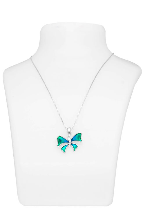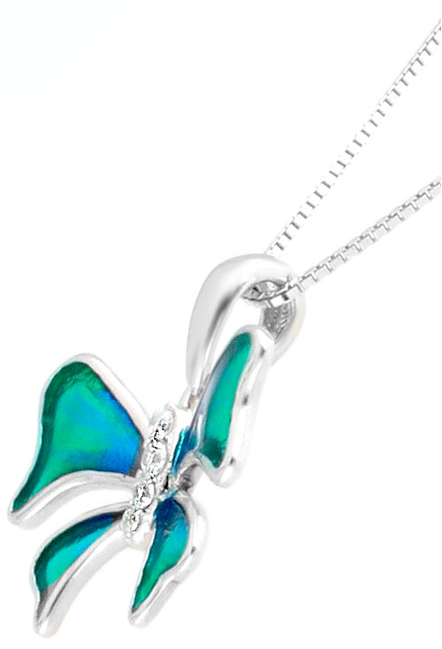 Gargantilla de plata mariposa esmalte verde y circonitas