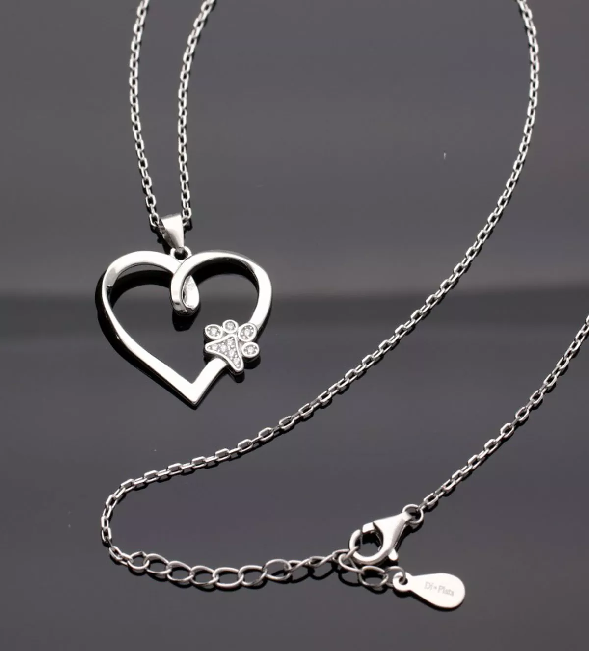 - Colgante con diseño de corazón y huella de mascota en circones.