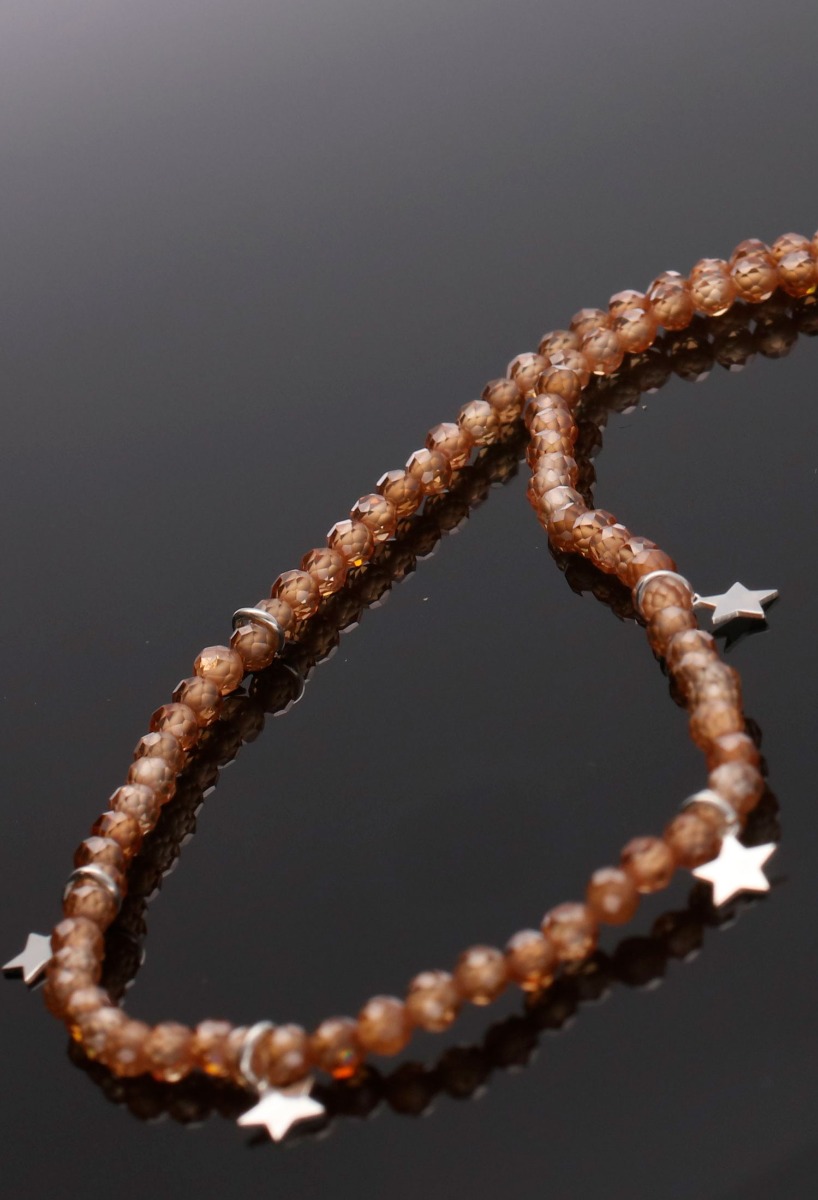 Gargantilla estrellas plata y cristales de cuarzo tono anaranjado 240_GP-3EC-MA
