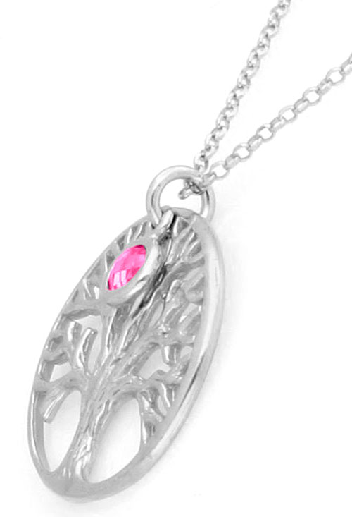 Gargantilla plata árbol de la vida con piedra rosa