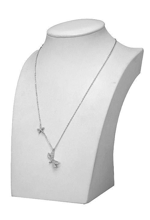 Gargantilla plata motivos estrella y mariposa con circonitas, cadena fina de eslabones forzados con cierre de seguridad tipo reasa de la que cuelgan dos motivos en forma de estrella y mariposa con adornos de circonitas engastadas, elaborada en plata de lay de 925 milésimas, sometida a proceso de rodinado, este baño en rodio hace que la gargantilla brille más y permanezca mucho más tiempo en perfecto estado, porque este proceso evita la oxidación de la plata.
