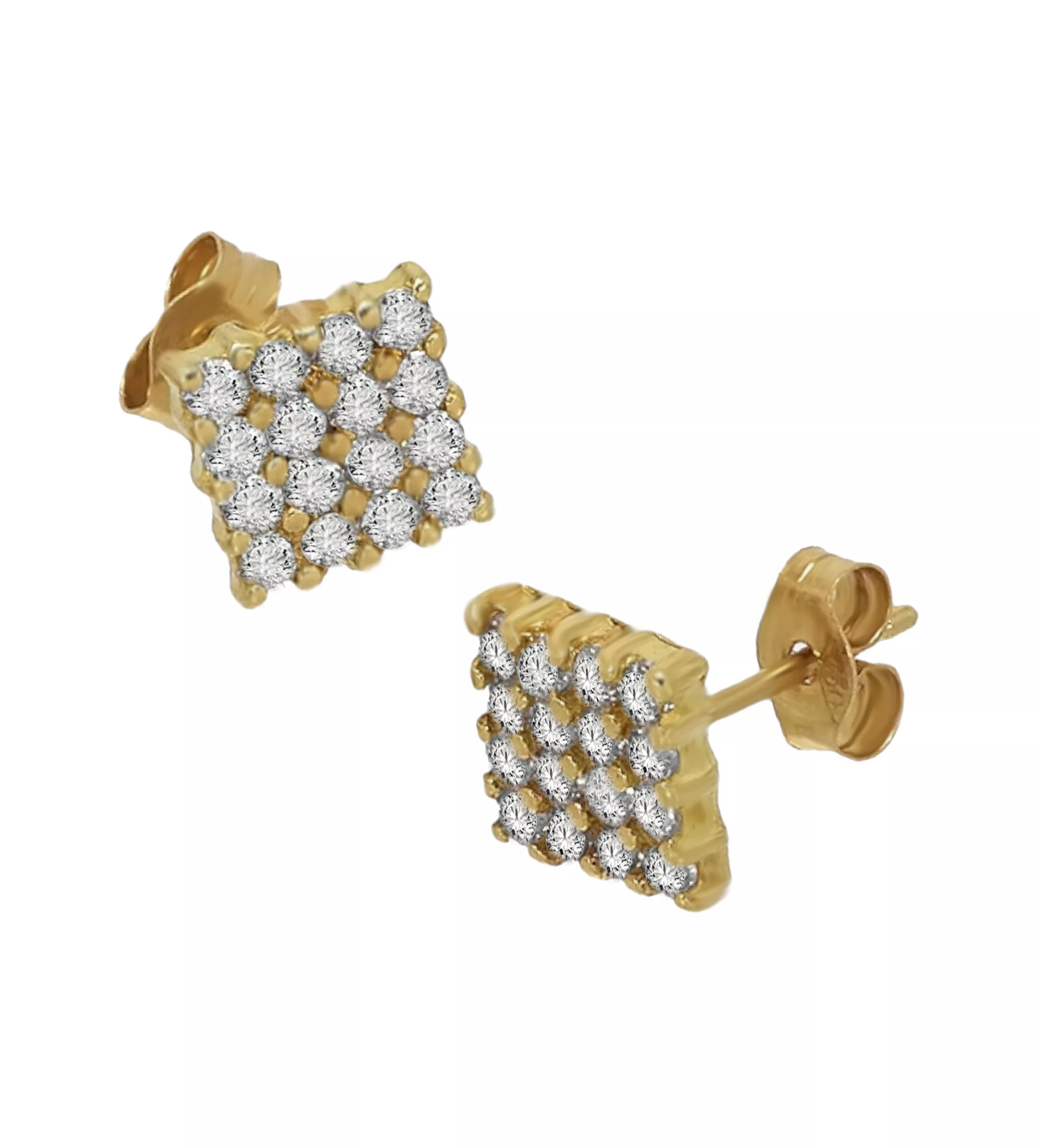 Conjunto oro 18 ktes para Comunión, pendientes y sortija de oro amarillo 18 kilates con circonitas engastadas, forma cuadrada.
