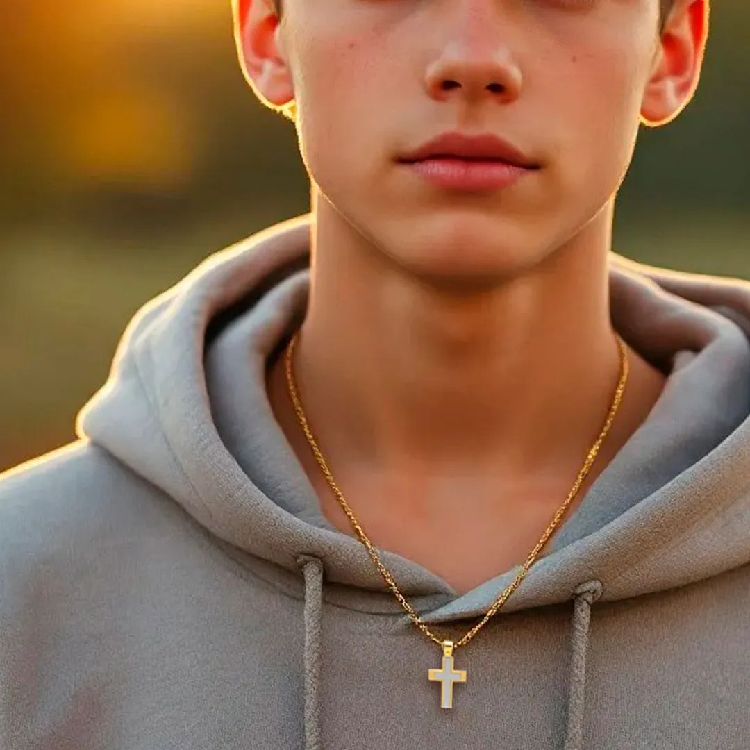 Gracias a su elegancia y diseño robusto, esta cruz de oro es ideal para: