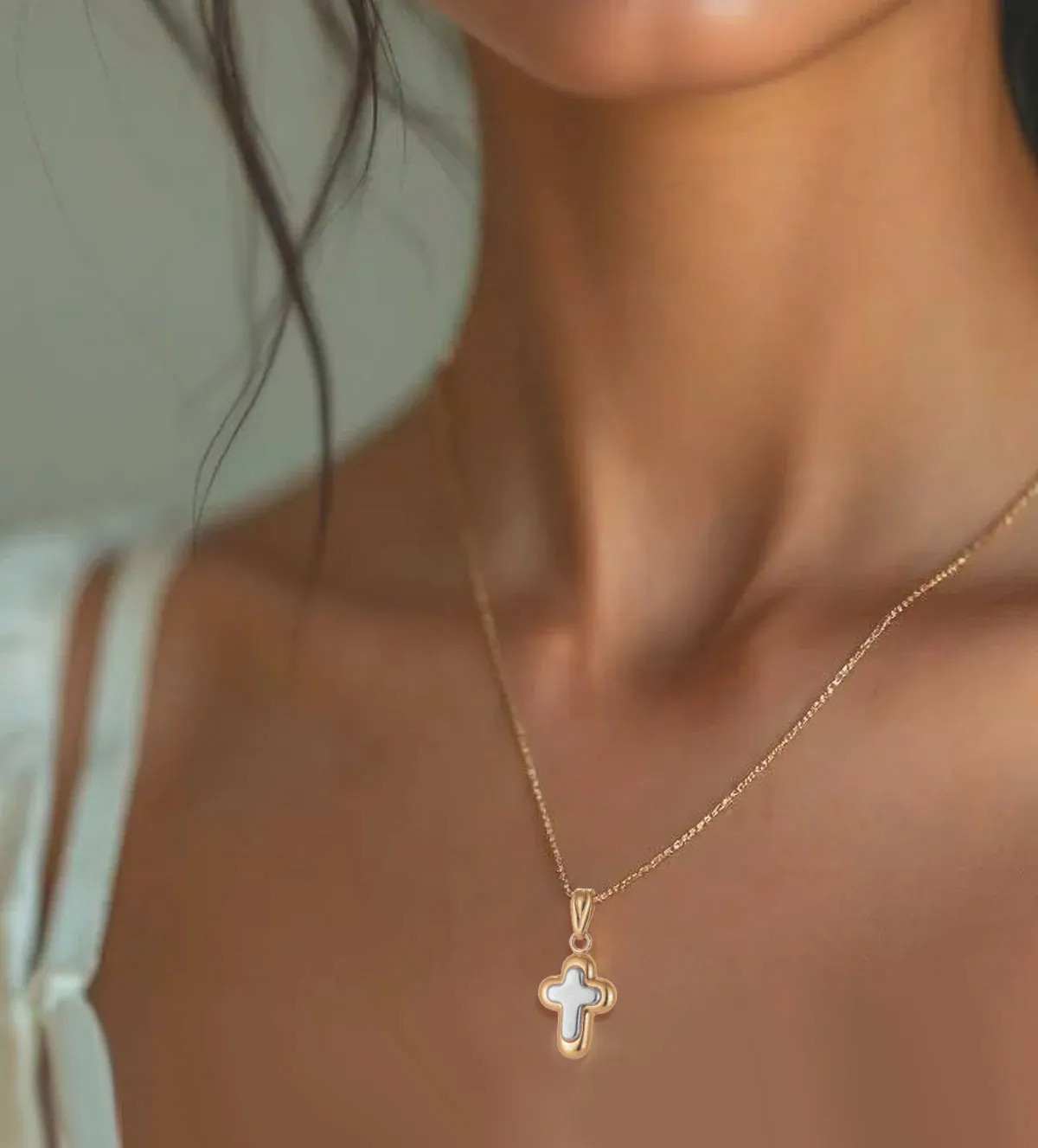 Cruz de oro bicolor: distinción, versatilidad y elegancia en una joya única