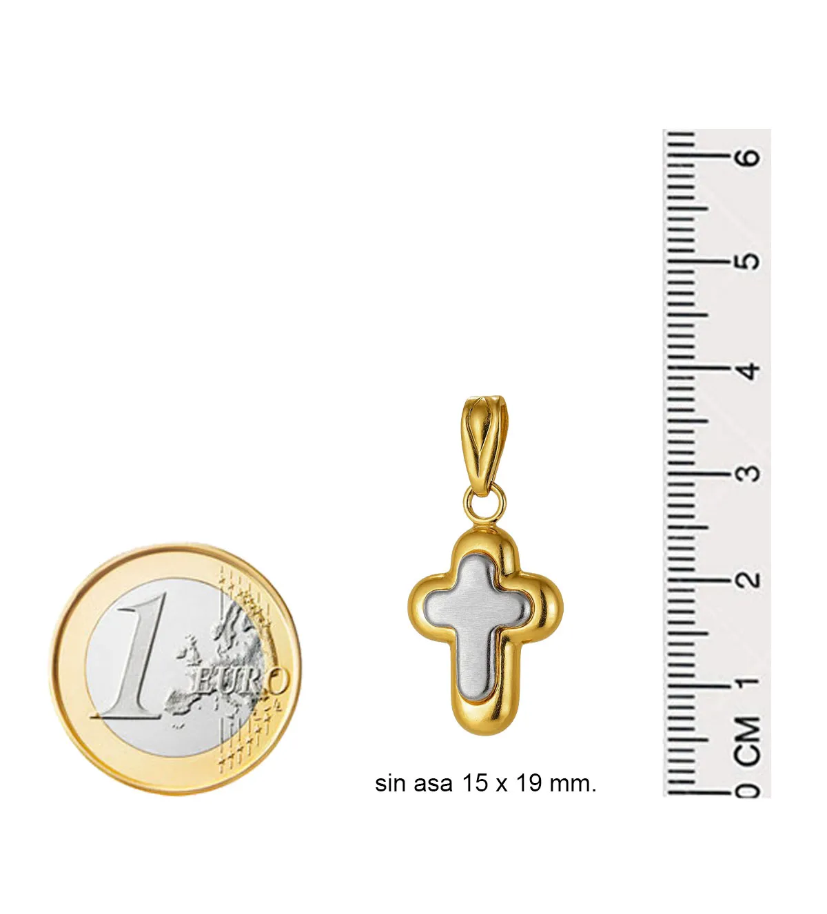 | Medidas | Cruz de oro bicolor de 15×19 mm. |