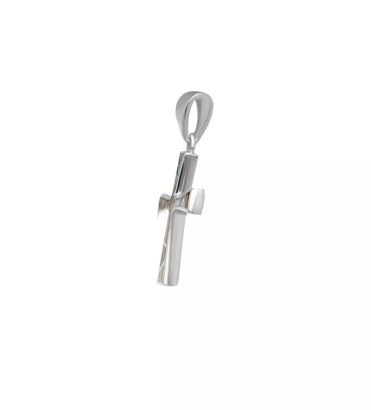 Cruz de plata “Mosaico” plata y nácar en singular combinación.