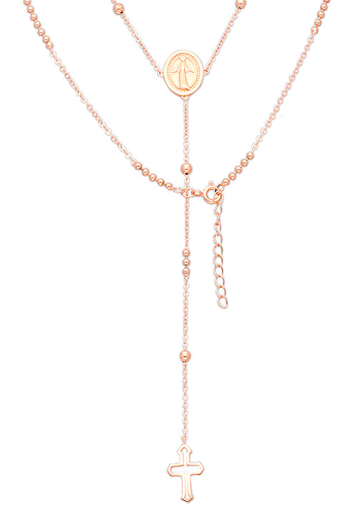 Rosario de plata chapada Virgen Milagrosa y Cruz calada