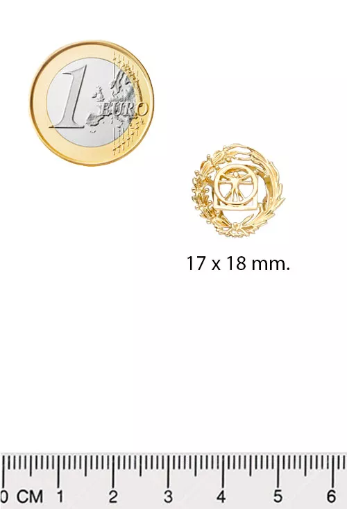 Insignia de oro 18K bellas artes, con un peso de 2.20 gramos y confeccionada en oro de 1ª Ley 18 kilates, esta insignia es más que una joya; es una obra maestra que rinde homenaje a la elegancia y la creatividad.