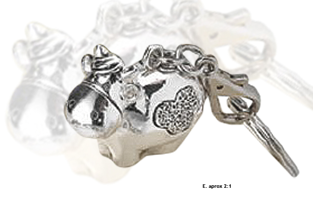 Llavero fantasía diversos materiales. Plateado. Vaca.