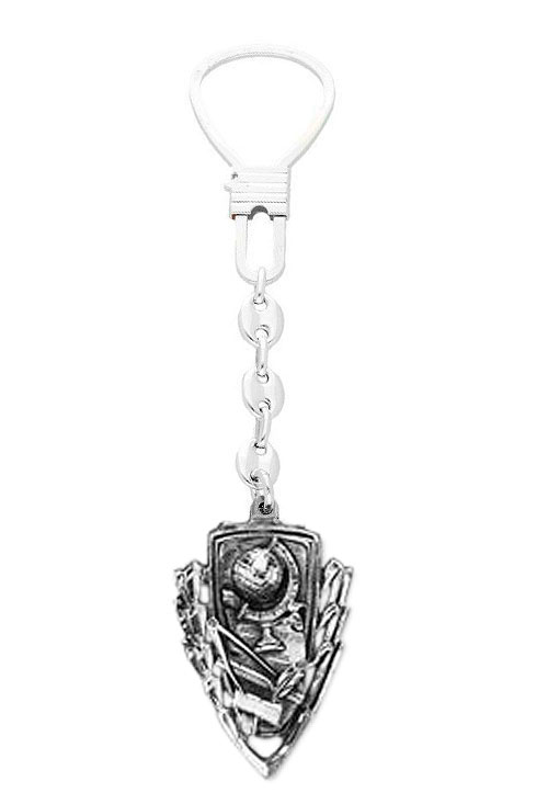 Llavero plata carrera de Magisterio, este llavero es sin duda un regalo inolvidable para realizar el día de la graduación, el llavero esta formado por una insignia con forma de triangulo y perímetro de laureles con el logo de magisterio realizado en alto relieve con plata envejecida y un pergamino en su parte trasera donde poder grabar una dedicatoria o fecha, lira de seguridad y cadena eslabones calabrote.