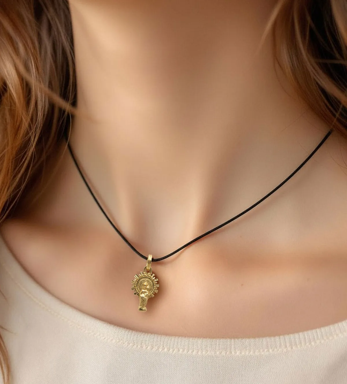Gracias a sus dimensiones proporcionadas, esta medalla resulta cómoda y versátil para el uso diario. Puede llevarse sola o acompañada de otros colgantes, adaptándose fácilmente a distintos estilos y cadenas. Su peso equilibrado permite disfrutarla durante todo el día sin resultar incómoda, lo que la convierte en una joya práctica además de simbólica.