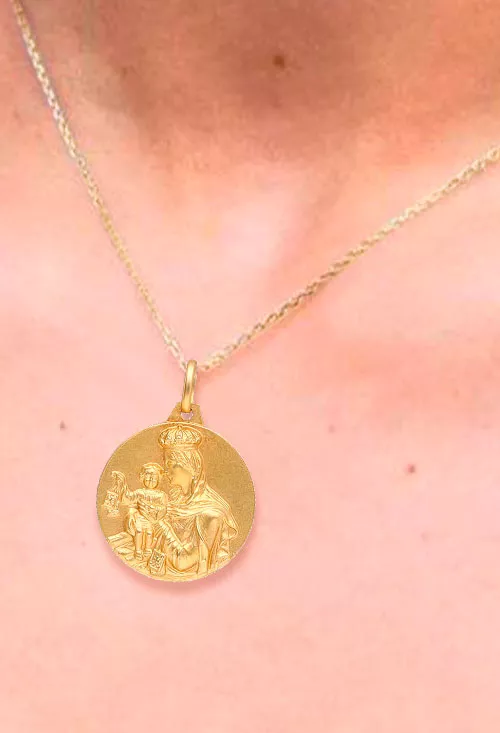 El oro de primera ley 18 kilates utilizado en la elaboración de esta medalla garantiza tanto su elegancia como su durabilidad. El brillo eterno del oro realza la belleza de las imágenes sagradas grabadas en la medalla, creando una pieza de joyería que no solo es hermosa, sino también resistente al paso del tiempo. Su diseño discreto permite llevarla cómodamente en cualquier momento y lugar, añadiendo un toque de sofisticación a cualquier conjunto.