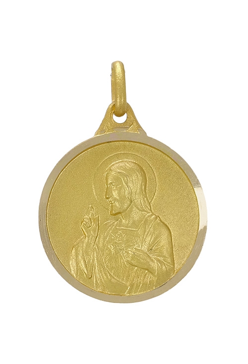 Medalla Escapulario de oro matizado de ley de 18 kilates con las imágenes de la Virgen de Carmen y el Sagrado Corazón de Jesús, bisel brillo y lapidado en la parte exterior, tiene un diámetro de 18 milímetros con un peso aproximado de 2.70 gramos. Perfecto regalo para cualquier ocasión, cumpleaños, santo, aniversario, etc…