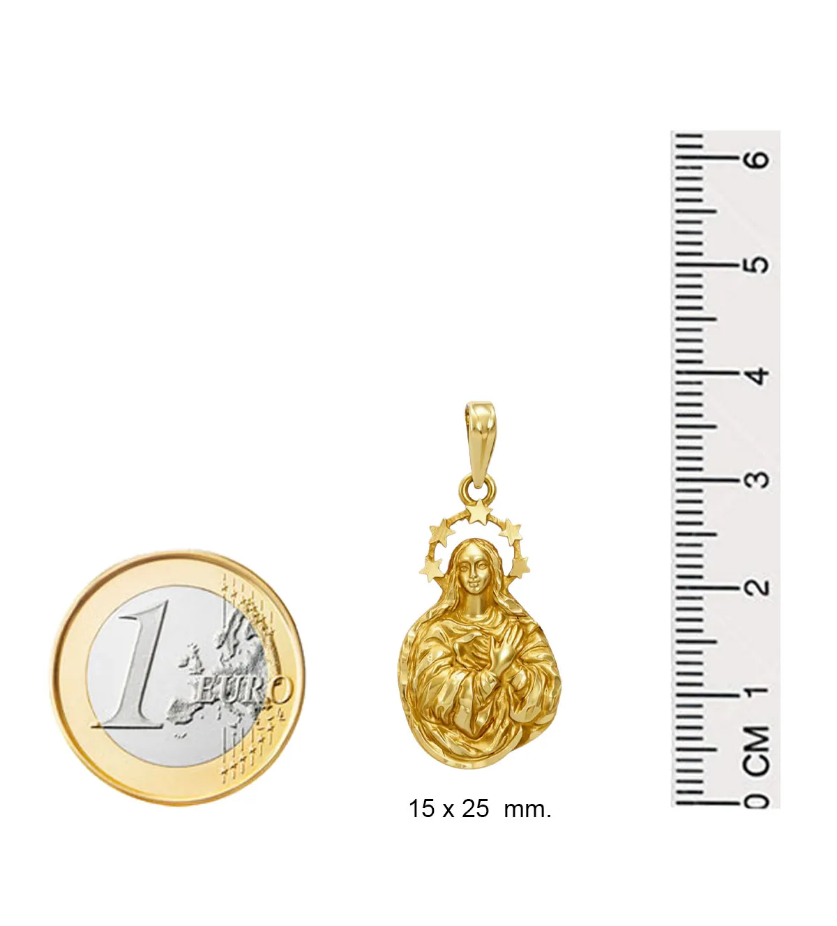 La medalla de oro de la Virgen Inmaculada simboliza protección, pureza y fe. Es una figura profundamente vinculada a la tradición religiosa y considerada patrona de numerosas congregaciones y poblaciones, además de patrona del cuerpo de infantería del ejército español.
