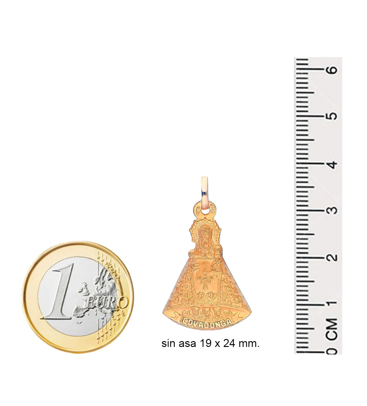 Con unas medidas de 19×24 milímetros, esta medalla de oro presenta un tamaño ideal para ser llevada cómodamente en el día a día sin resultar ostentosa. Su peso aproximado de 2.50 gramos la hace ligera y agradable de llevar al cuello, ya sea con una cadena fina o más robusta. Su diseño compacto permite que se convierta en un símbolo personal y discreto de fe y tradición, acompañando a quien la lleva en cada momento.