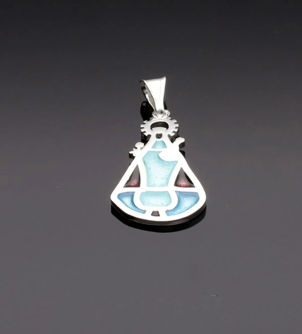 Descubre la fusión perfecta entre fe, diseño contemporáneo y calidad artesanal con esta medalla de plata dedicada a la Virgen de Covadonga. Una joya que se distingue por su silueta moderna, esmalte a fuego en tonos vibrantes y un toque completamente original que la convierte en un colgante devocional fuera de lo convencional.