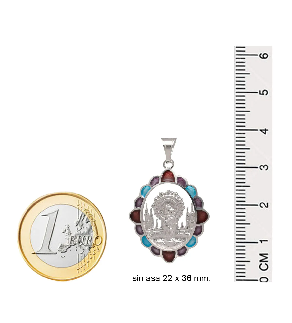 La medalla presenta un tamaño ideal para ser usada con diferentes estilos de cadena, ya sea en plata o en materiales mixtos. Su asa superior ha sido reforzada para garantizar una sujeción segura y duradera, permitiendo un uso diario sin preocupaciones.
