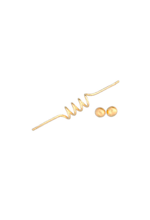 Piercing industrial oro 18k hilo con espiral, piercing oro amarillo primera ley con topes forma de bola y una espiral de hilo de oro en el centro, esta joya se utiliza por igual para ambos sexos, sobretodo por miembros del paisaje urbano como rockeros, metal, pink, gótico, hipster u otros muchos.