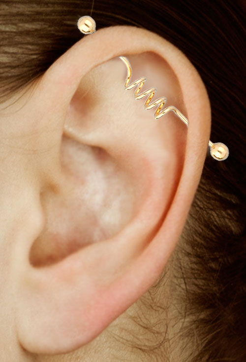 Piercing industrial oro 18k hilo con espiral