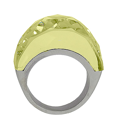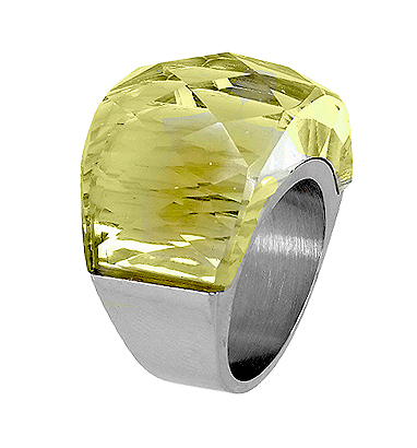 Anillo con piedra color verde claro facetada en acero 276_A023-149